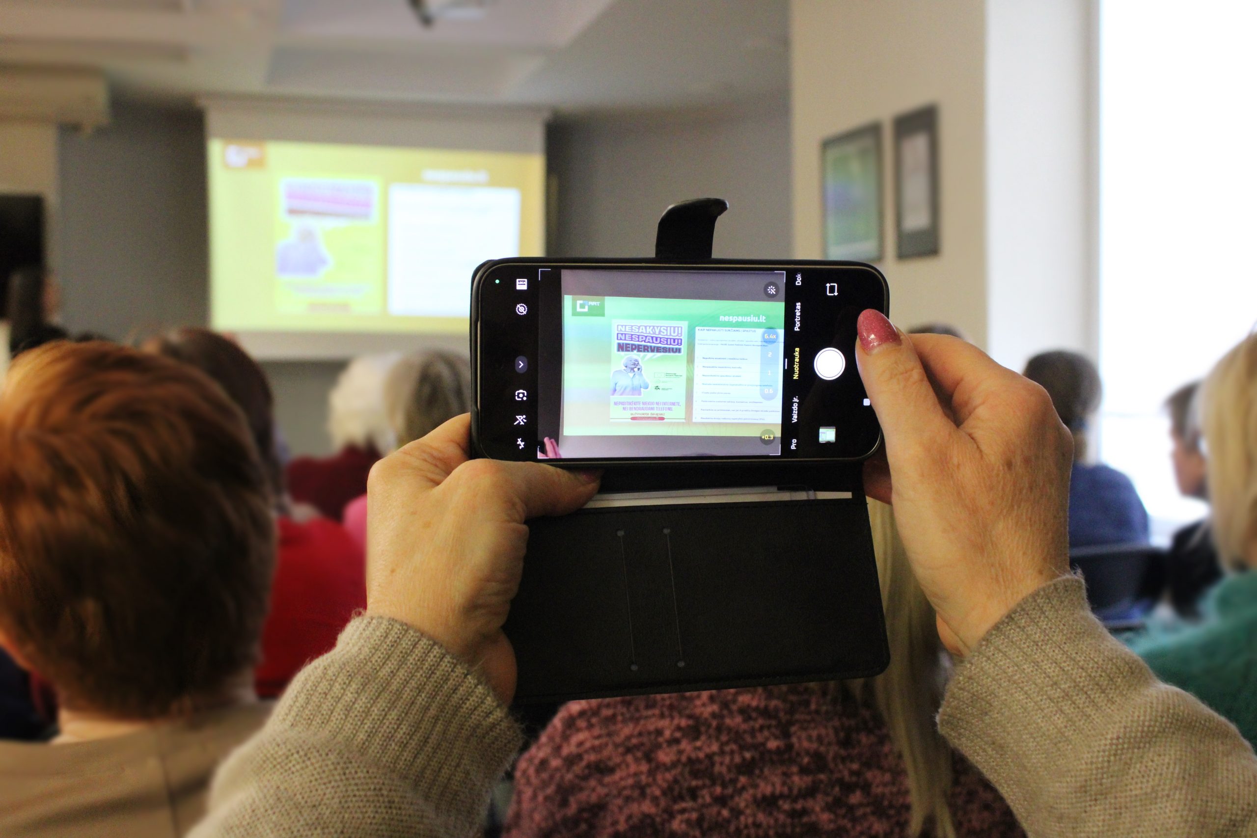 Pasibaigus transliacijai Viešojoje bibliotekoje vyko Ryšių reguliavimo tarnybos atstovių Linos Bartkienės ir Alos Čepelevskajos paskaita „Kibernetiniai sukčiai ir kaip nuo jų apsisaugoti?“, kurios metu dalyviai turėjo galimybę išsamiau susipažinti su sparčiai plintančiomis sukčiavimo schemomis ir praktiniais būdais, padedančiais apsisaugoti kasdienėje skaitmeninėje erdvėje.