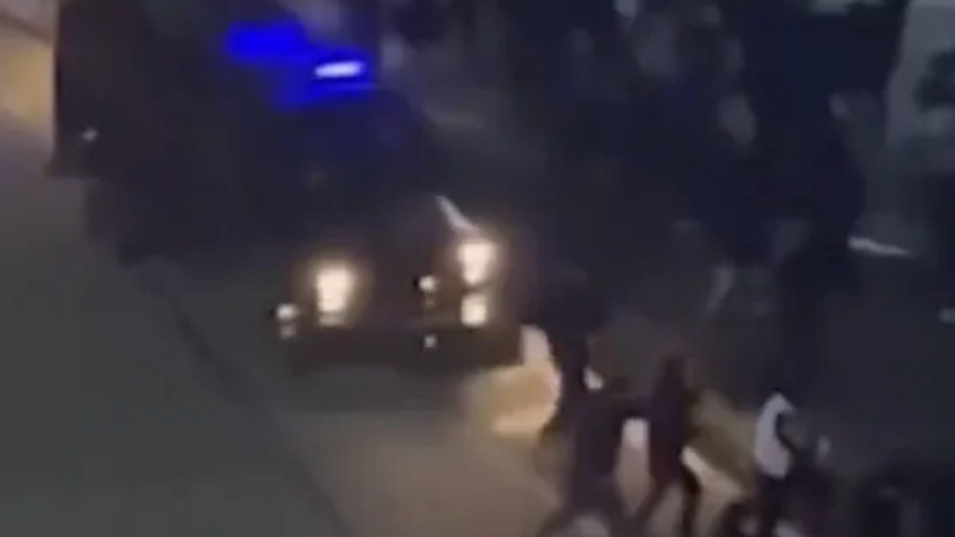 Šokiruojantys kadrai rodo, kaip juodas sunkvežimis su mirksinčiomis šviesomis lekia sausakimša gatve.