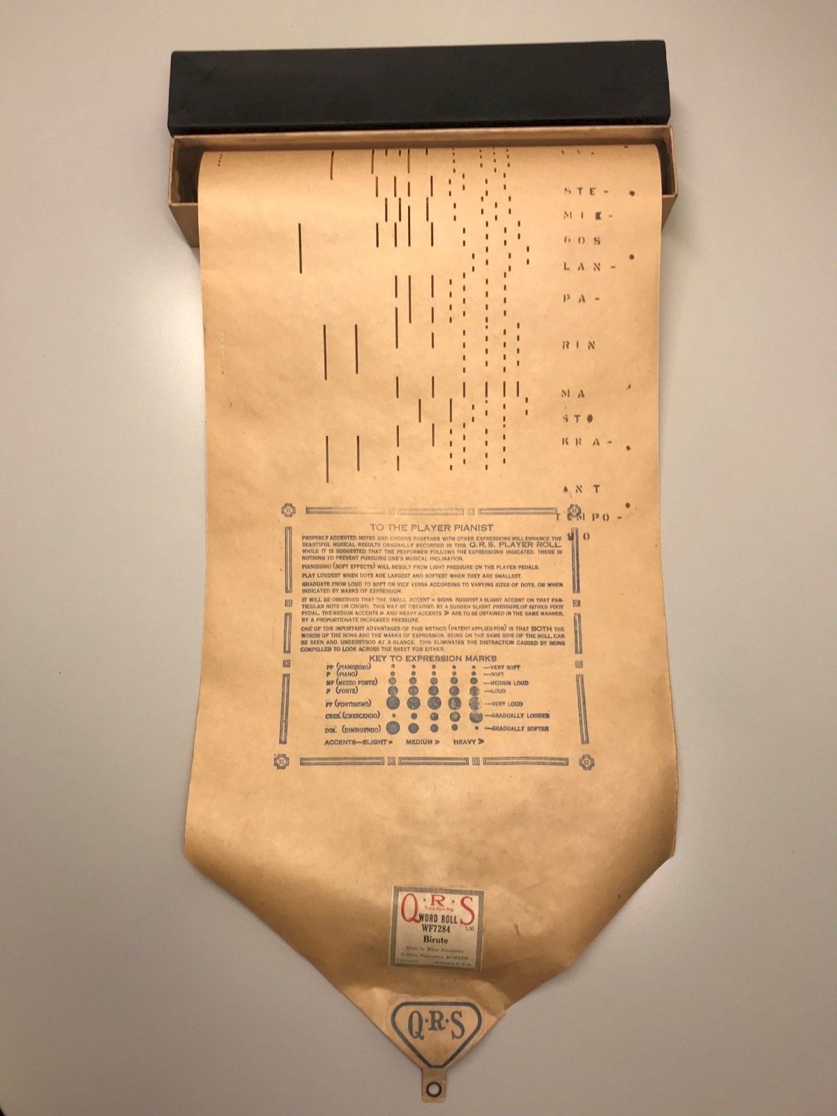 Lietuviškų ritinėlių kolekcija yra analogų neturintis muzikos fiksavimo būdas – muzikos perforacija popieriuje – atskleidžia tautos muzikinę raišką, repertuarą ir XX a. pradžioje besiformuojančią norminę lietuvių kalbą bei atskirus jos dialektus.